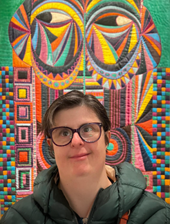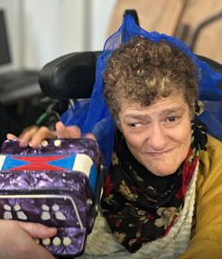 Hanni joined QQF in 2025. She has a good sense of humour and is seen here producing sound on a melodeon.